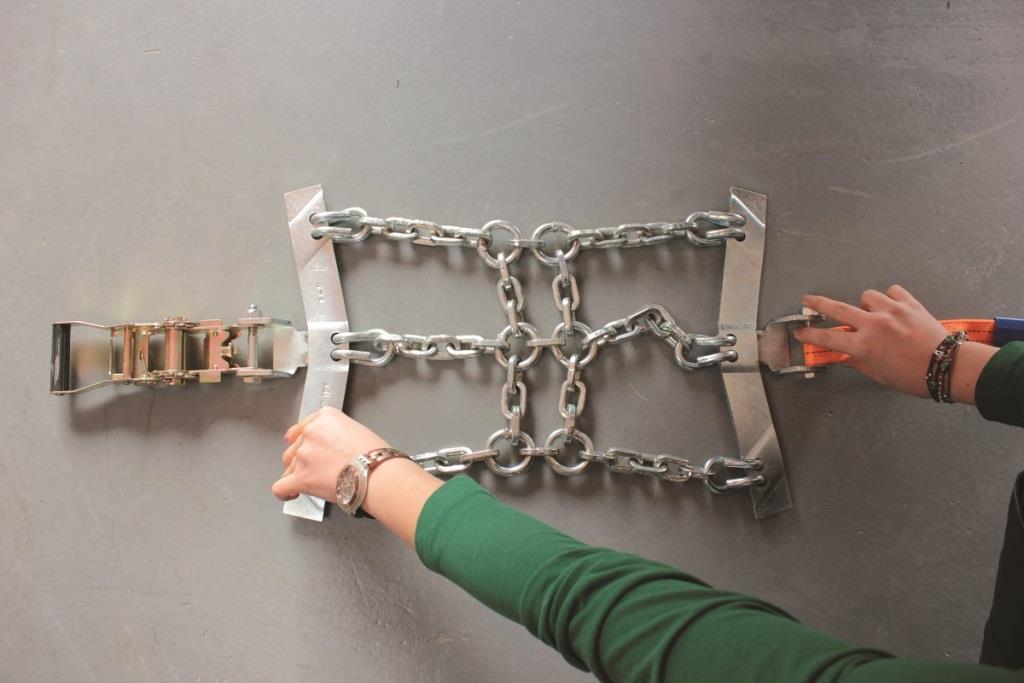 - Karda ve buzda güvenli tutuş için ‘’D’’ profil bağlantıları ile kare örgülü yüzeyi özel alaşımlı çelikten imal edilmiştir. Yüksek kalitede ısıl işlem-sementasyon uygulanmıştır.