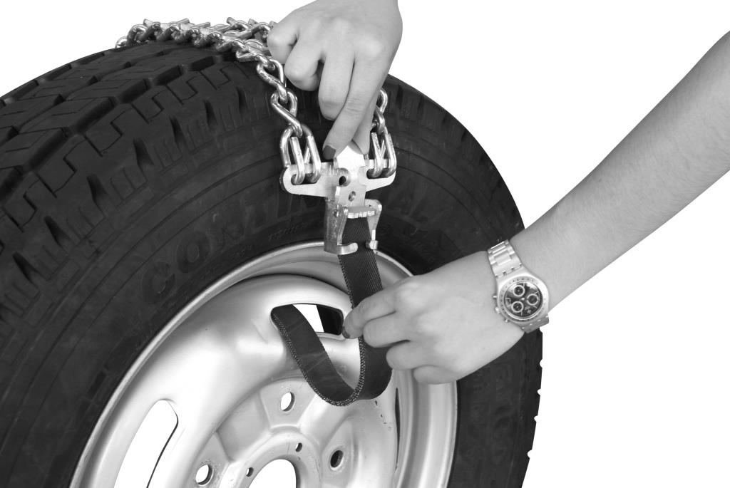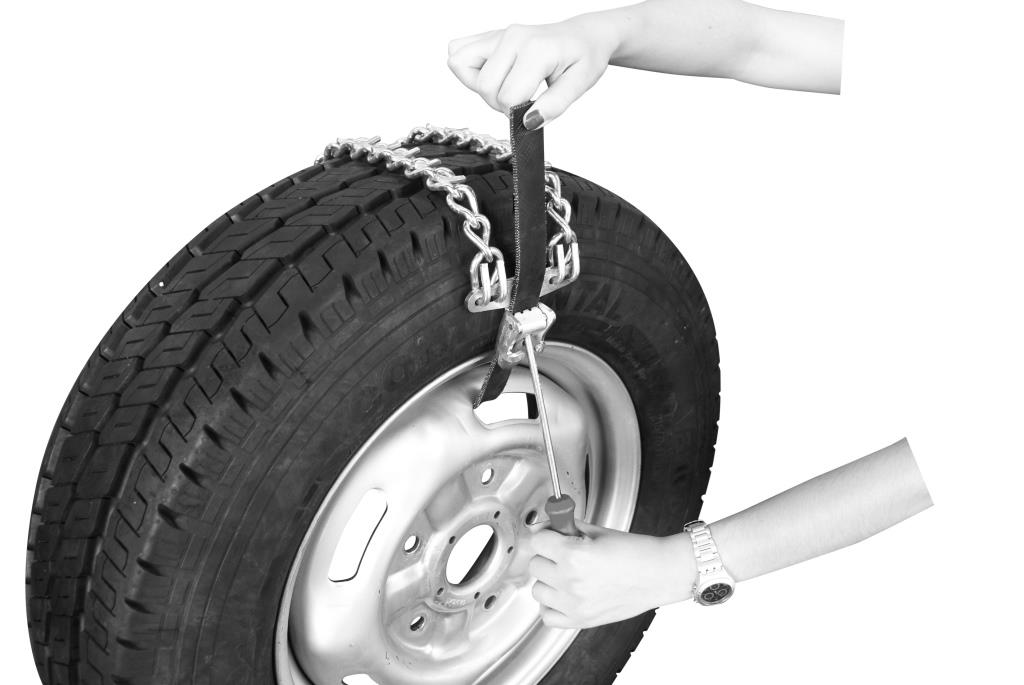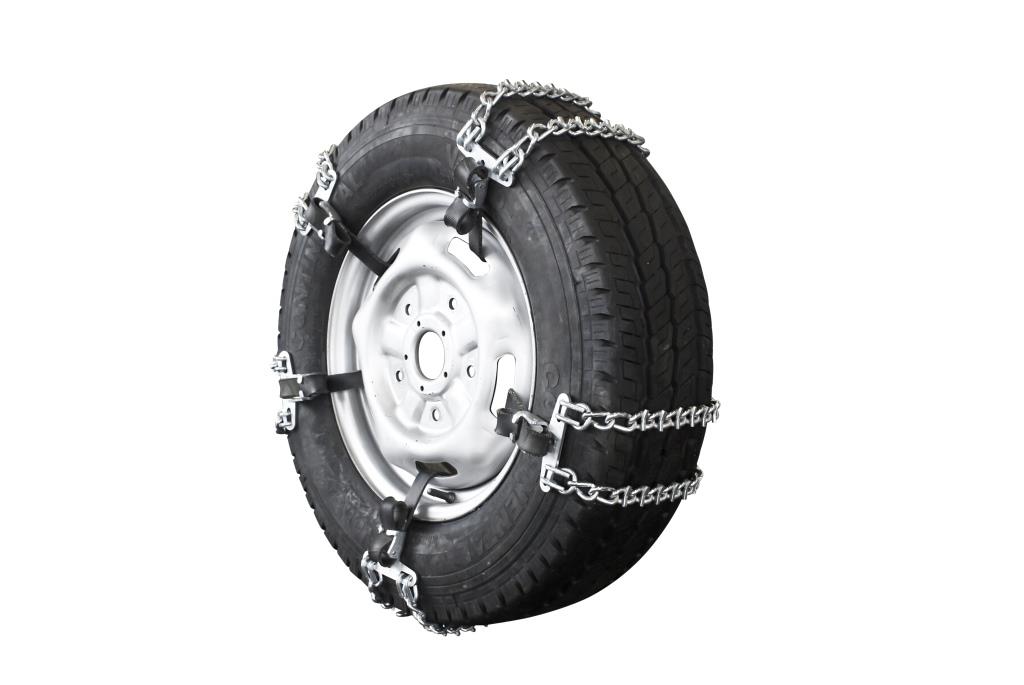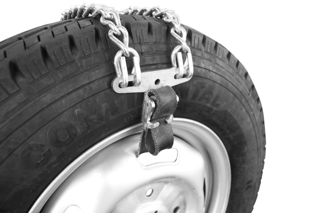 • 8 mm twisted, 7 mm “V” bar stud chain • Useful for vehicles with holes in their rims. • Pratical assembly lock • To ensure optimal functioning, we recommend the installation of at least three elements onto each of the drive wheels.
