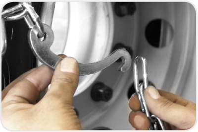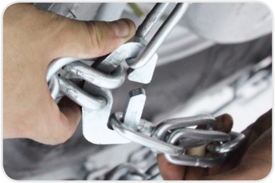 • Kare çelikten yapılmış ek takviye çubukları hem zincirin çekiş gücünü hem de dayanıklılığını artırmak için zincirin baklalarına kaynatılmıştır. Ağlı zincir deseninden dolayı ağır hizmet kullanımı için uygundur.