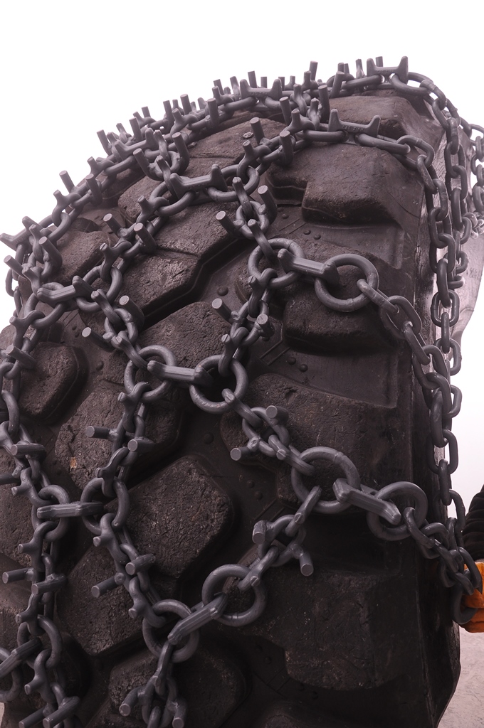 EJDER model was created by the combination of the drop forged bar studs, drop forged spiked studs and welded U-studs. Welded U- studs provide excellent grip with reducing contact area, and with the endurance of drop forged bar & spiked studs EJDER model well-suits for heavy-duty forestry purposes on difficult grounds and designed for all type of forestry machines. Side Chains: 13 – 16 mm Wear & Connection Rings: 16 mm Drop-Forged Bar Studs (Traction Links): 15 mm Welded U-Studs: 16 mm Drop - Forged Spiked Studs (Traction Links): 14 mm • Standard design is without tensioning chains but also available with tensioning system.