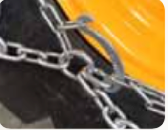 PARS, having square wear chains, is reinforced with U- spiked studs to enhance the highest traction in snowy and muddy ground. The spiked studs and flash welded rings are used as wear parts to provide additional grip and durability. The light tension system developed for this model, both keeps the tensioning simple and allow optimum fit for all type of tires. Side Chains: 8 - 10 mm Wear Chains: 8 - 10 mm Square Profile Wear & Connection Rings: 9 - 11 mm Welded Spiked-Studs: 8 - 9 mm • Standard design is with tensioning chains.