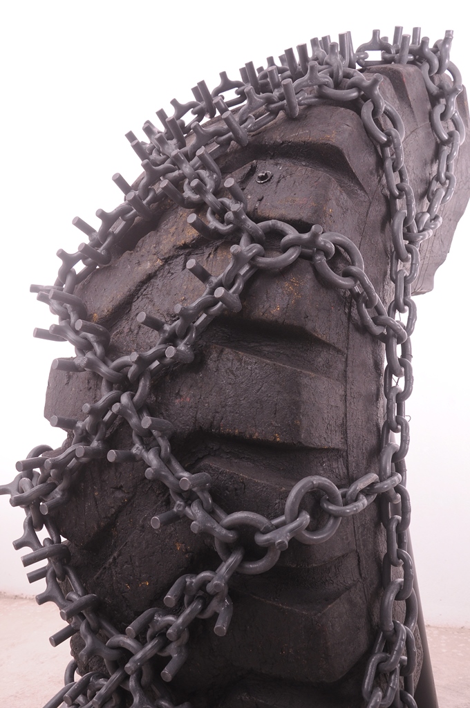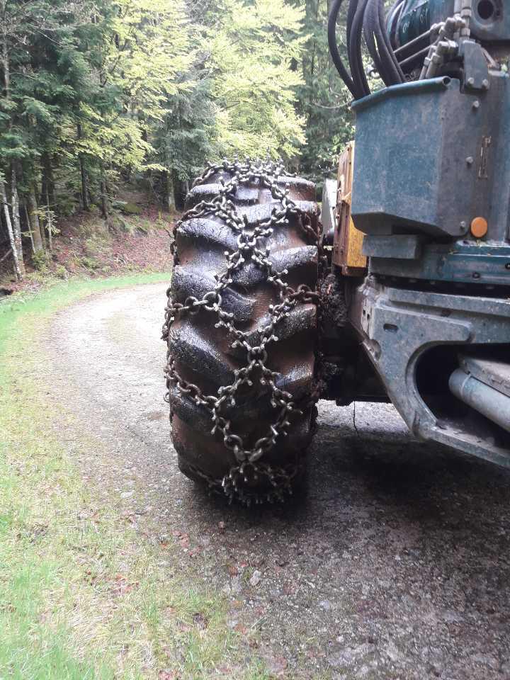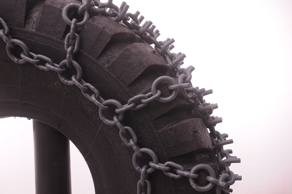 PENÇE model increases the traction with welded U-studs and drop forged spiked studs. Especially for softer terrains long welded U-studs provides excellent grip and drop forged spiked studs both increase the traction and operating life of PENÇE. In order to ensure long lasting of chain, flash welded rings are used which also provides easy mounting at worn tires with the help of adjustment elements. Side Chains: 13 – 16mm Wear & Connection Rings: 16 mm Welded U-Studs: 16 mm Drop - Forged Spiked Studs (Traction Links): 14 mm • Standard design is without tensioning chains but also available with tensioning system.